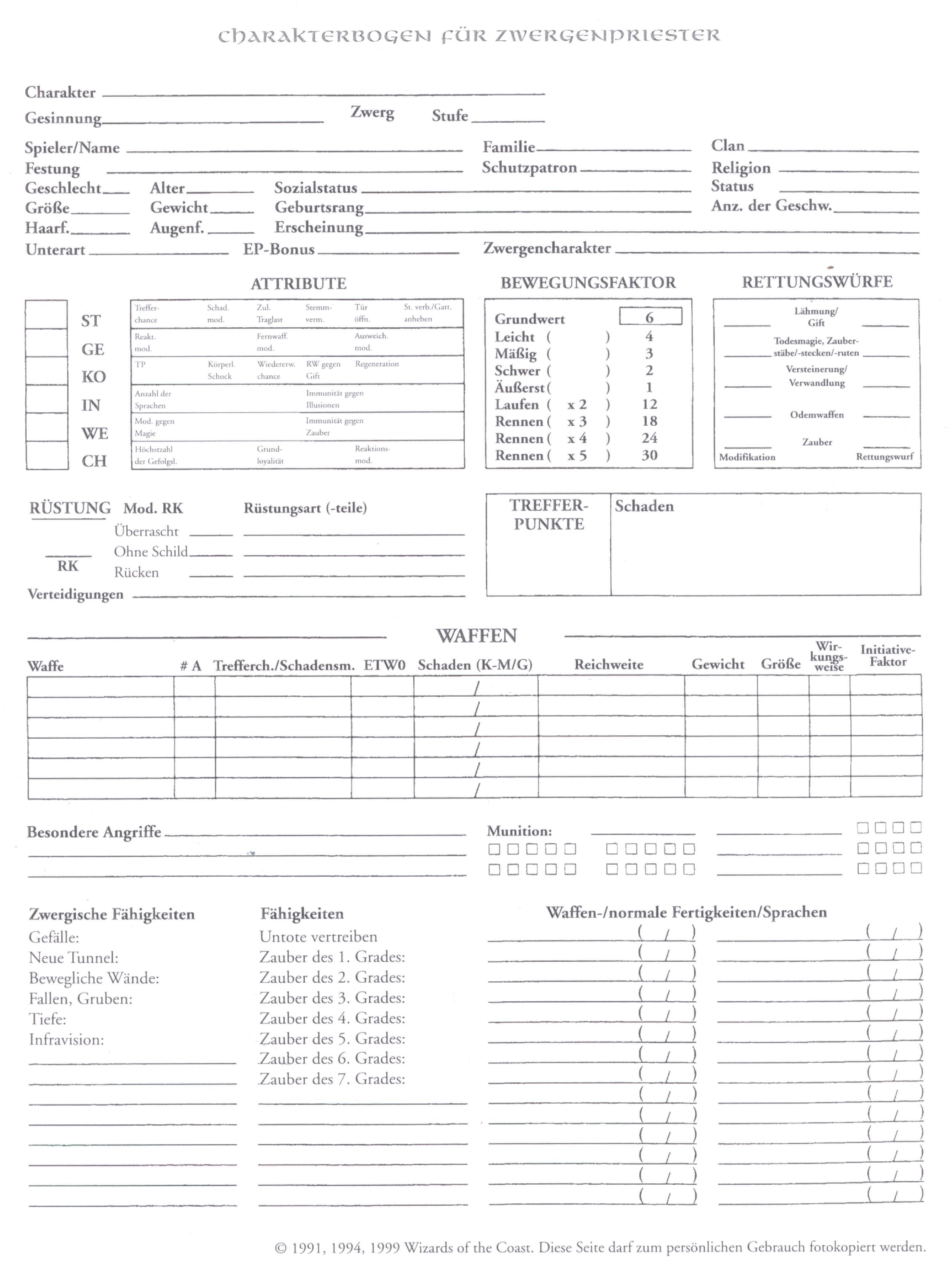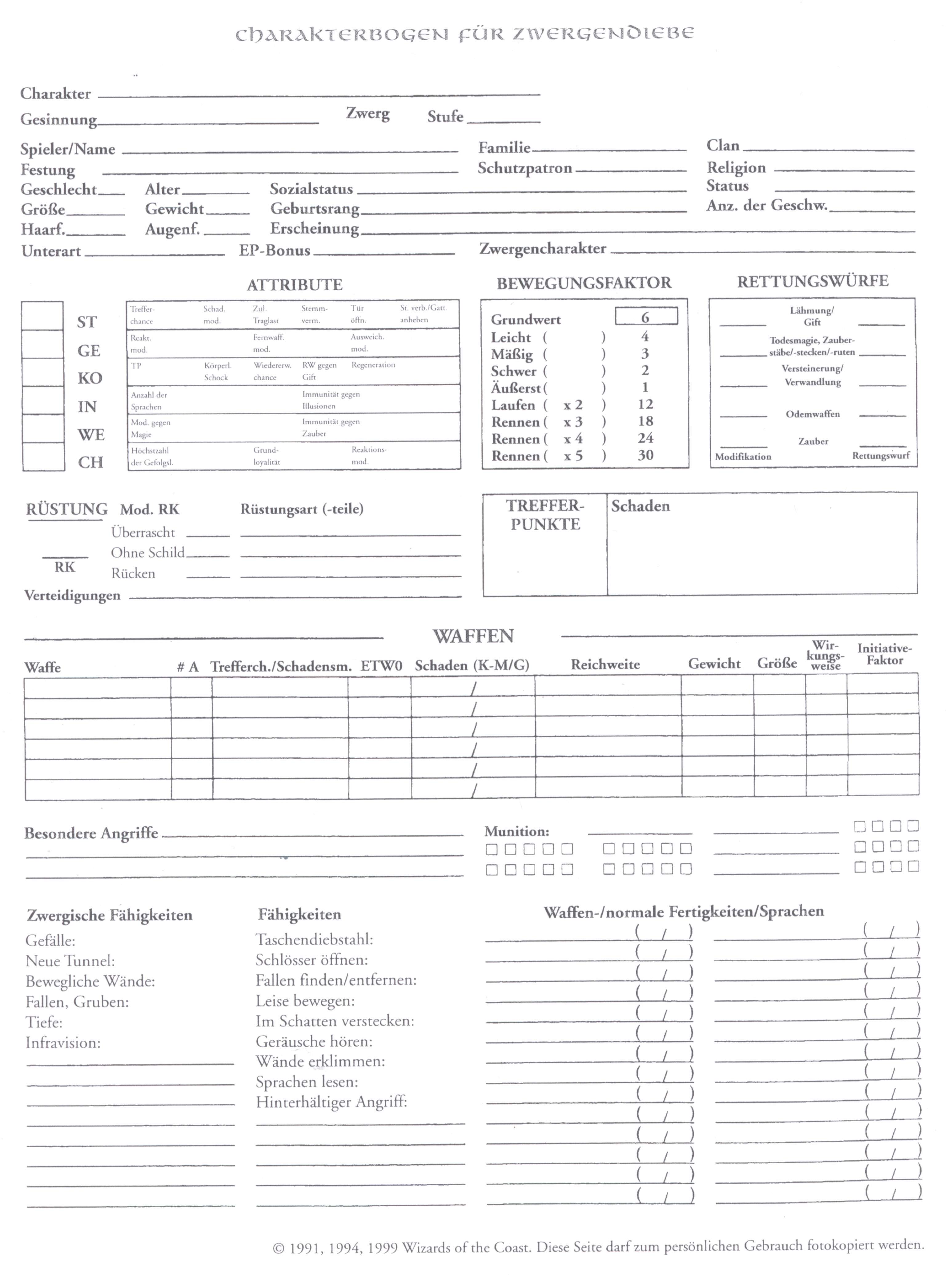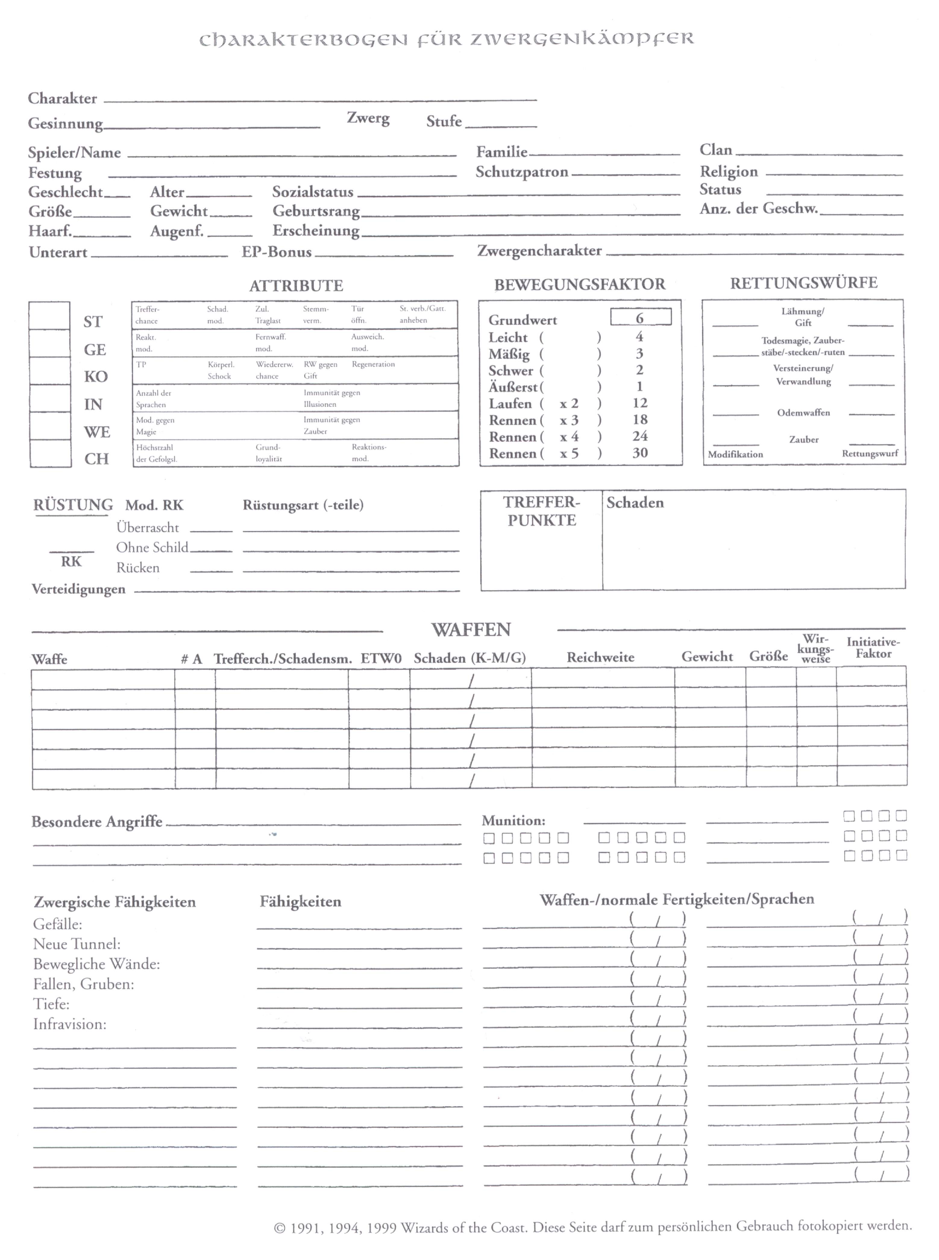Hier findet ihr wissenswertes und interessantes zu AD&D und zum Rollenspiel allgemein! Wissenswertes & nützliche Dinge für einen Abenteurer (Word-Dokumente, Excel-Sheets, PDFs, ZIPs): Um den "Adobe Acrobat Reader" (für PDF-Dokumente) herunterzuladen klickt bitte hier! Wissenswertes & interessantes zu Waffen, Rüstungen & Ausrüstungsgegenständen Um den Adobe Acrobat Reader (für PDF-Dokumente) herunterzuladen klickt bitte hier! Um den "7-Zip" (für ZIP-Archive) herunterzuladen klickt bitte hier! Bilder & Grafiken für AD&D Charakterbögen und / inkl. Zauberbücher (Word-Dokumente, Excel-Sheets, PDFs): Um den Adobe Acrobat Reader (für PDF-Dokumente) herunterzuladen klickt bitte hier! Bei den nachfolgenden Dokumenten handelt es sich um "Amigo"-Originalbögen, die mit einem © versehen sind. Das herunterladen ist somit nur Mitgliedern unserer Rollenspielgruppe gestattet, welche diese Bögen auch gekauft haben! Mitglieder unserer Rollenpielgruppe geben bitte ihren Namen und ihr persönliches Kennwort für den Download ein! Original AD&D Charakterbögen (400dpi Scans / JPG): |